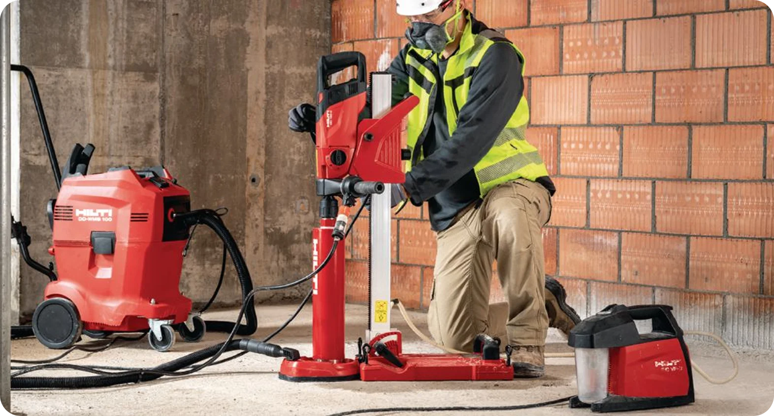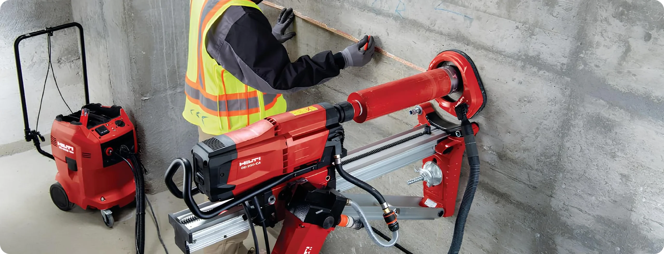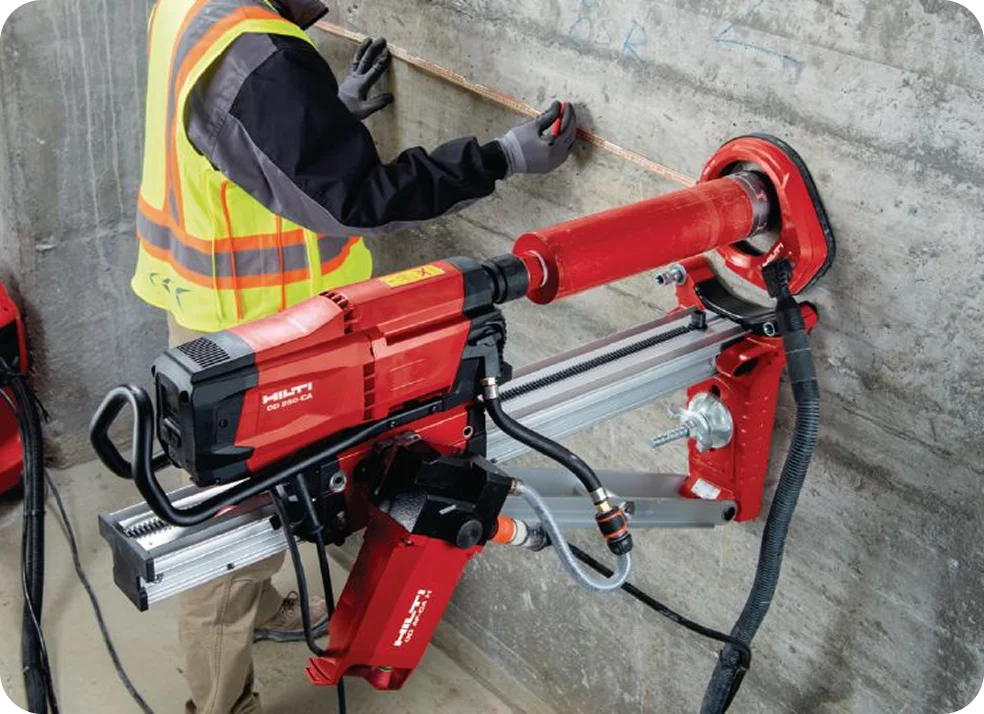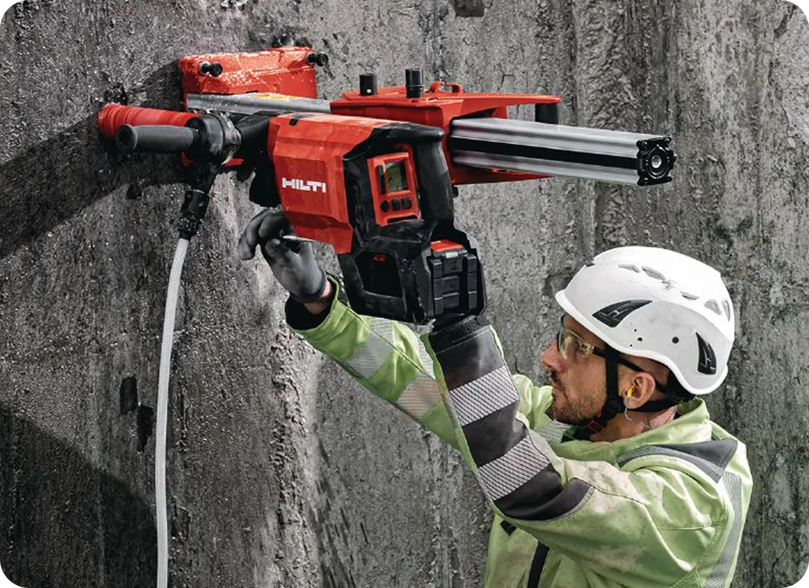 Core drilling in concrete, reinforced concrete, masonry, asphalt, and wood — up to 23-5/8″ (600 mm) diameter.