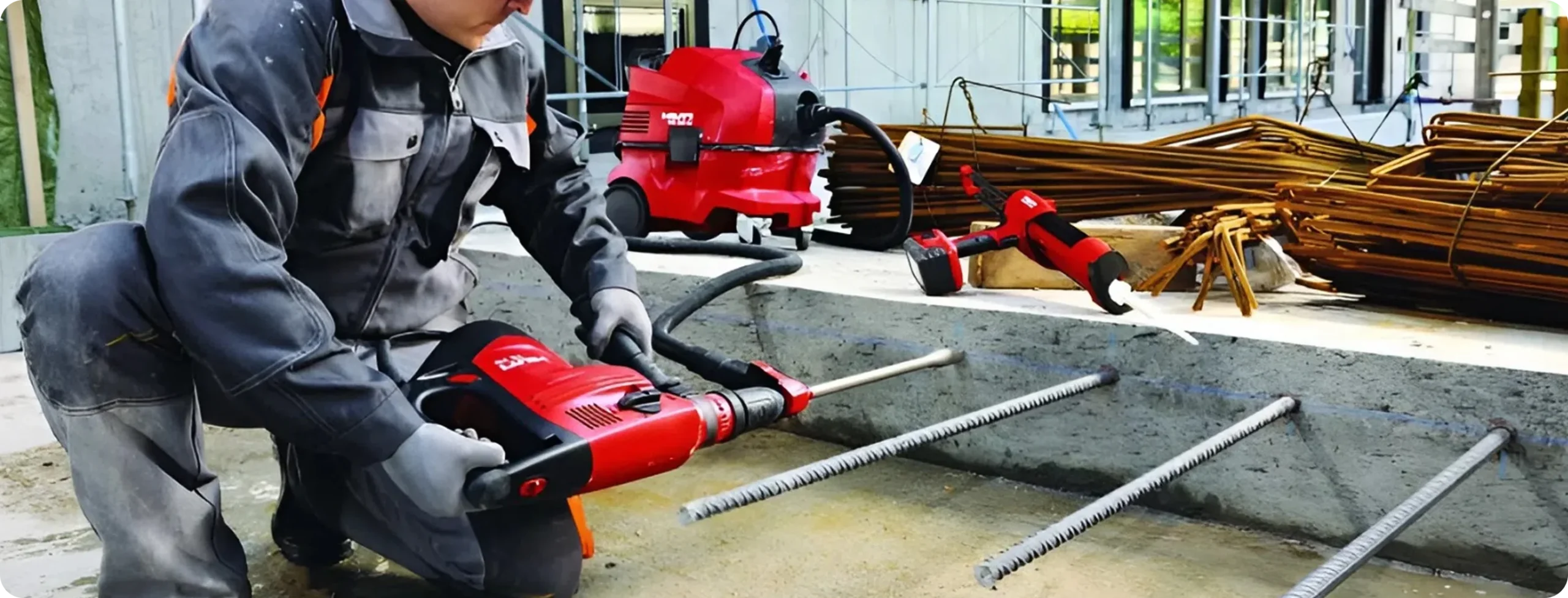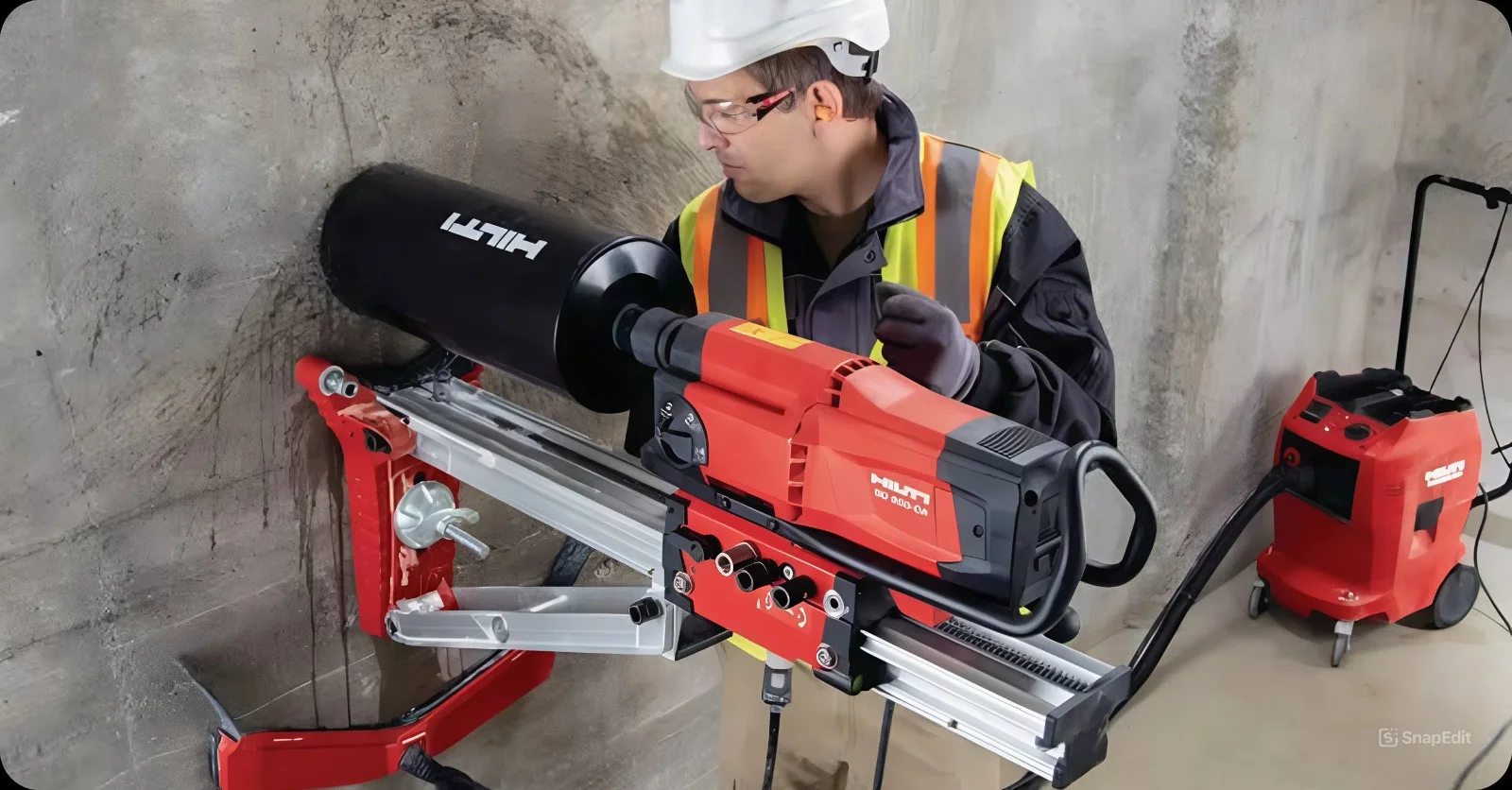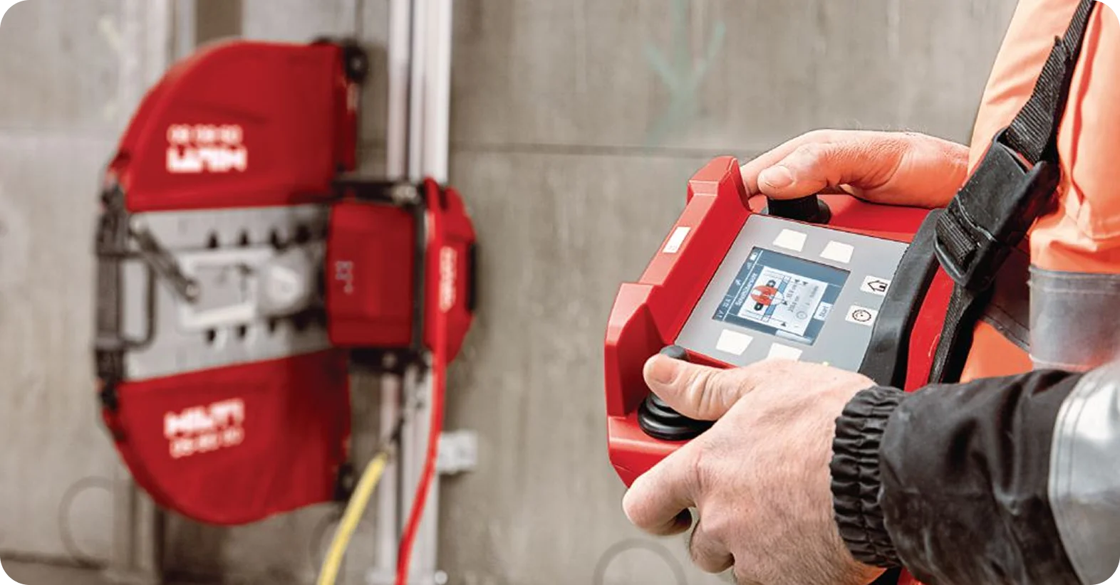 Core drilling in concrete, reinforced concrete, masonry, asphalt, and wood — up to 23-5/8″ (600 mm) diameter.