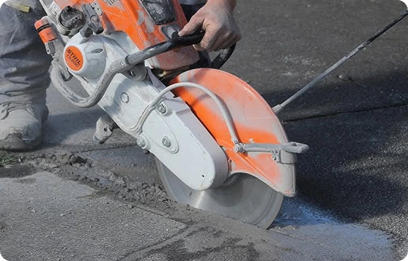 Concrete slab sawing and surface breaking up to 13″ (330 mm) depth.