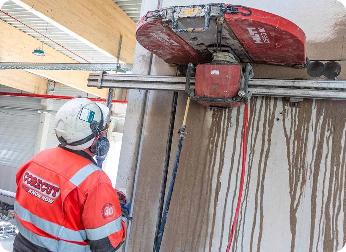 Wall sawing up to 21″ (530 mm) depth for doors, windows, and structural openings. Clean edges, precise alignment, minimal vibration.